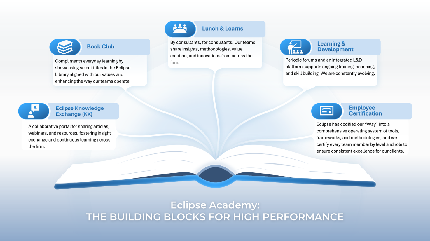 Eclipse Academy is our firmwide professional-development engine, built to accelerate growth and performance. The Academy ensures our people have the support they need to thrive and deliver exceptional value to clients.